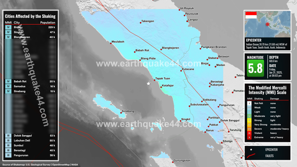 Aceh Selatan Earthquake Shakemap - M 5.8 - 66 km SSE of Blangpidie, Indonesia (Jan 31, 2025)